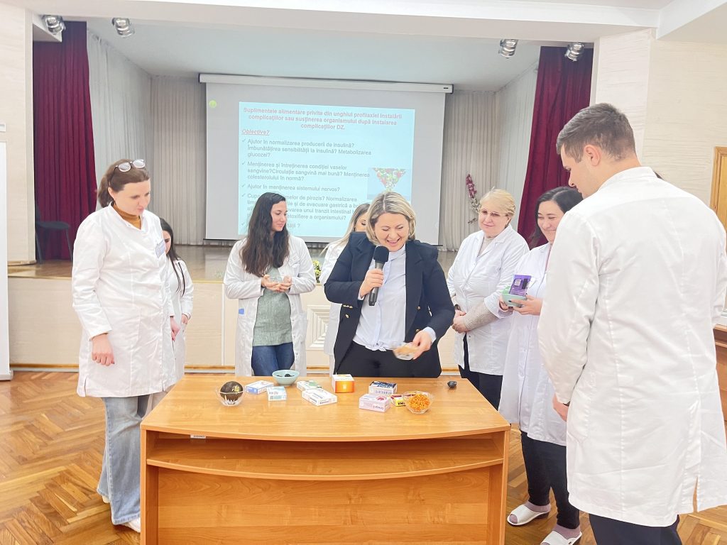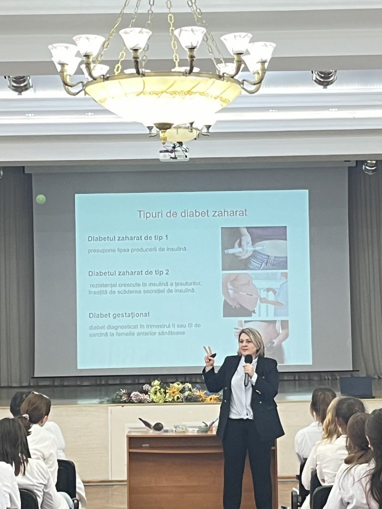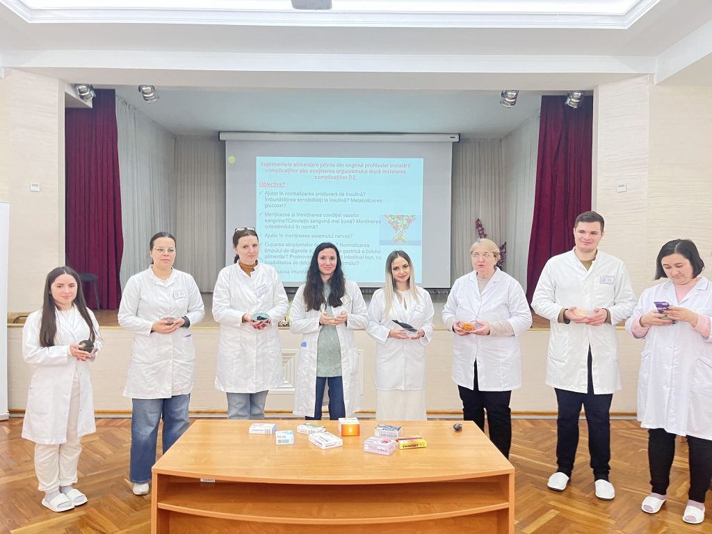 Ședința secției de învățământ cu elevii programului de formare profesională 0916.1 Farmacie, calificarea 0916.1.1 Asistent farmacist/ asistentă farmacistă a avut ca scop familiarizarea tineretului studios cu complicațiile diabetului zaharat. În calitate de invitat special la eveniment a participat medicul terapeut d-na Silvia Chitoroga. Interactivitatea, mediul captivant și tematica evenimentului a trezit un interes deosebit față de subiectul dezbătut.