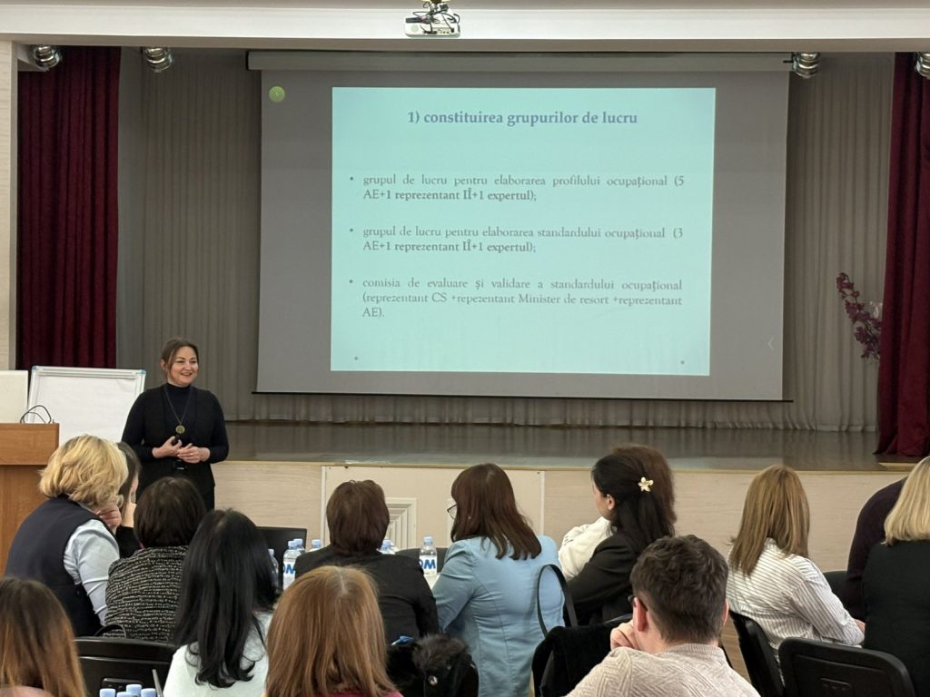 La data de 03 februarie, la Centrul de excelență în medicină și farmacie „Raisa Pacalo”, a avut loc prima ședință a grupurilor de lucru privind elaborarea și actualizarea profilurilor ocupaționale. Activitatea a fost orientată în mod direct spre realizarea instruirii specializate a participanților în domeniul elaborării profilurilor ocupaționale și a standardelor ocupaționale, în conformitate cu cerințele Cadrului Național al Calificărilor și cu politicile naționale în domeniul educației și al muncii. Instruirea a fost realizată de către Viorica Condruc consultant principal, Direcția Cadrul Național al Calificărilor din cadrul Ministerului Educației și Cercetării al RM și Mariana Stîrcul, consultant principal Ministerul Muncii și Protecției Sociale al RM. În cadrul atelierului, participanții au beneficiat de instruire teoretică și practică privind Metodologia de elaborare a profilurilor ocupaționale, structura, conținutul și funcția standardelor ocupaționale, corelarea atribuțiilor specifice calificărilor profesionale cu sarcinile concrete de lucru în deplină concordanță cu cerințele reale ale pieței muncii. La ședință au participat reprezentanți ai instituțiilor medico-sanitare și farmaceutice, specialiști din domeniul educației profesionale, cadre didactice și experți de profil, care au contribuit activ la procesul de instruire, la schimbul de experiență profesională și la fundamentarea unor documente ocupaționale coerente, unitare și relevante, menite să asigure calitatea, creșterea relevanței calificărilor, consolidarea legăturii dintre educație și piața muncii.